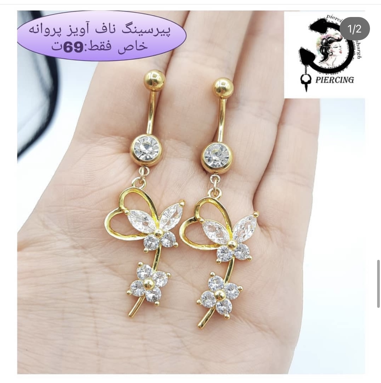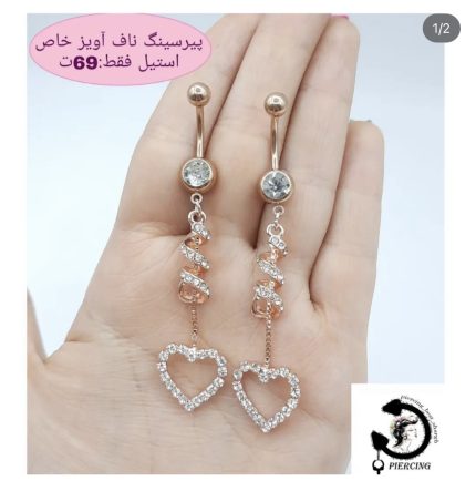 پيرسينگ ناف آويز دار طرح قلب و پروانه نگين اتمي